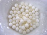お手玉の中に入れる材料はさまざまで、それぞれの地域、時代の特徴がよくあらわれています。ただ、材料の重さは各地共通で、ほぼ40g。手に持ったとき、卵1個よりやや軽いくらいの重さです。